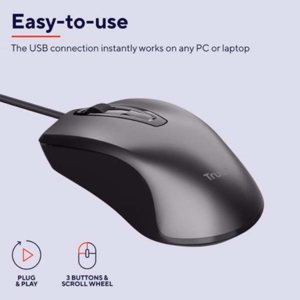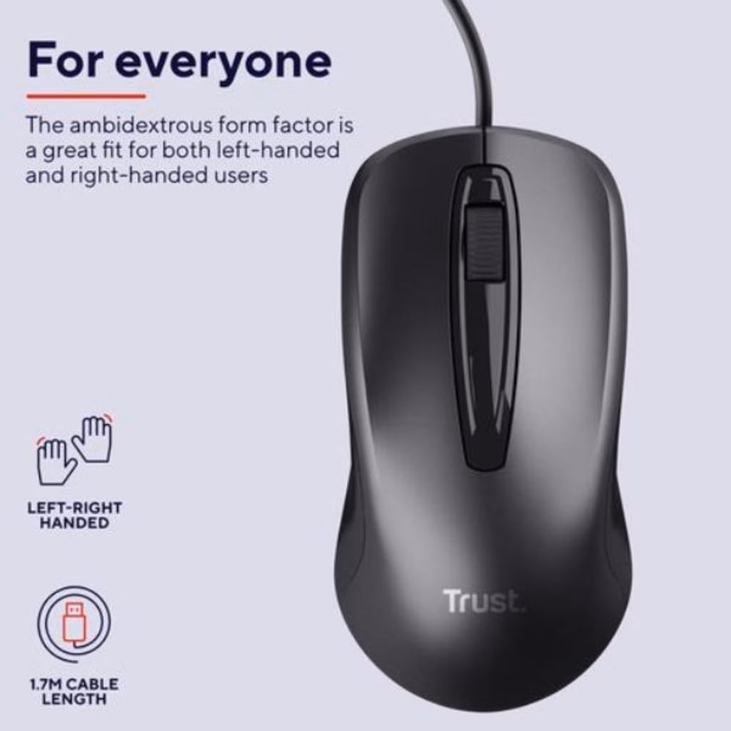 TRUST MOUSE CABLATO 170CM - 1200DPI - TRUST CARVE - NERO 23733