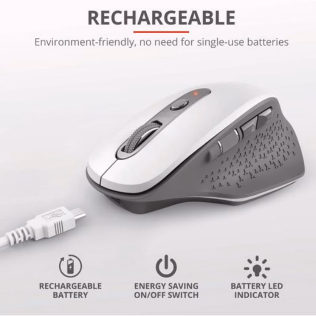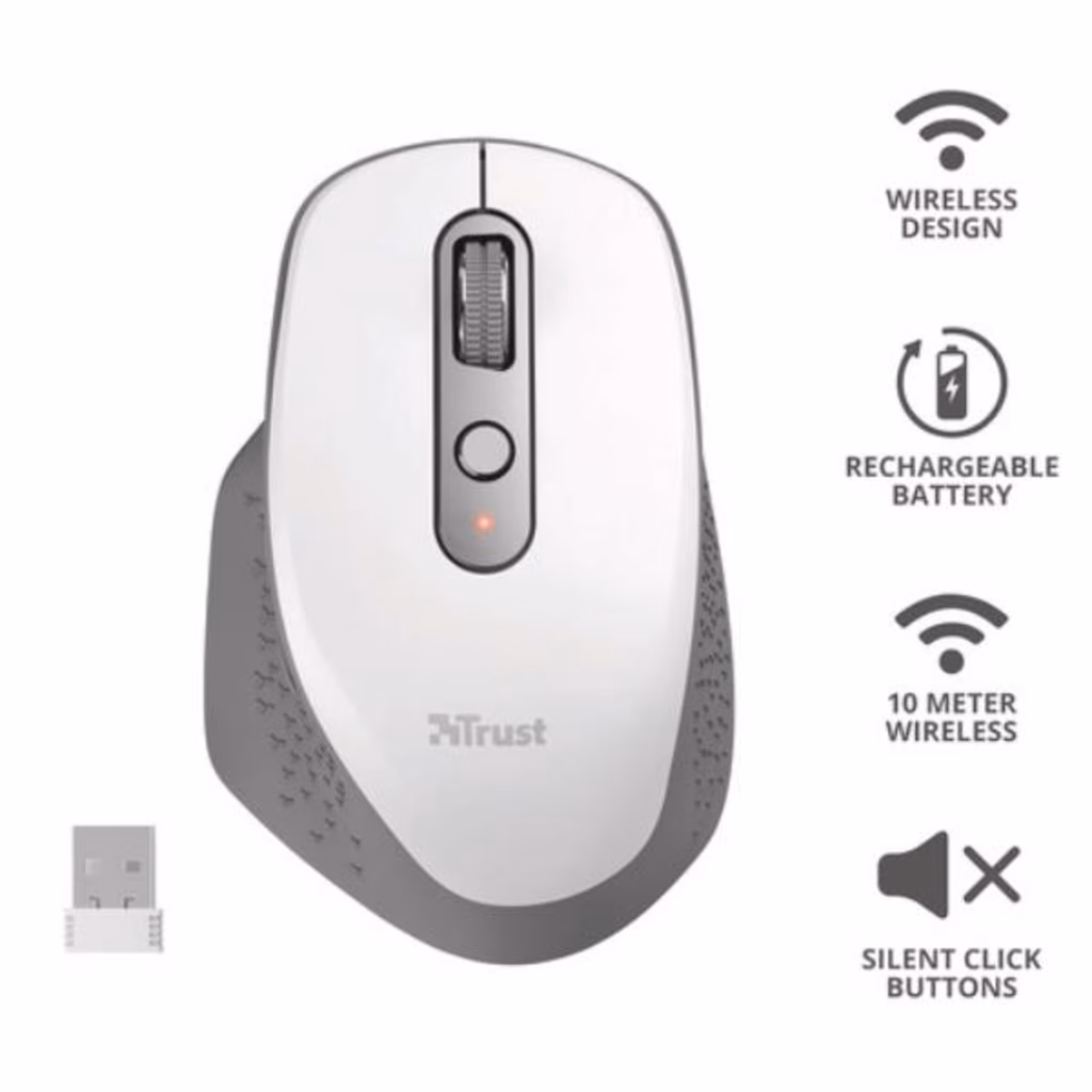 Il mouse wireless ricaricabile Trust Ozaa ti garantisce ore di comfort con un design ergonomico e ricaricabile pronto ad accompagnare lunghe sessioni di lavoro senza interruzioni.