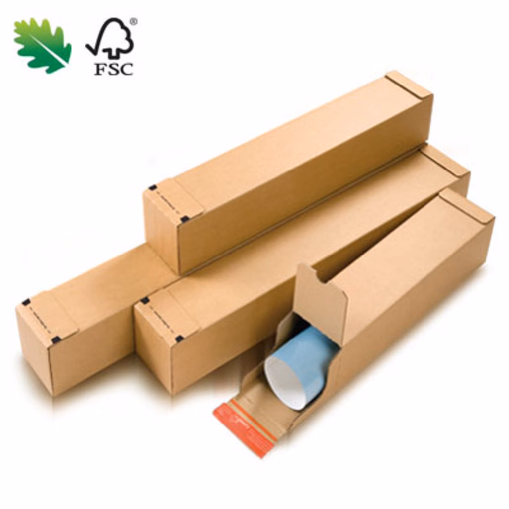Tubo in cartone fustellato a sezione quadrata per spedizioni e archivio (certificato FSC®) - chiusura autoadesiva sicura e veloce: non serve il nastro adesivo - linguetta a strappo per apertura facilitata - fornito steso per il minimo ingombro e veloce da assemblare
