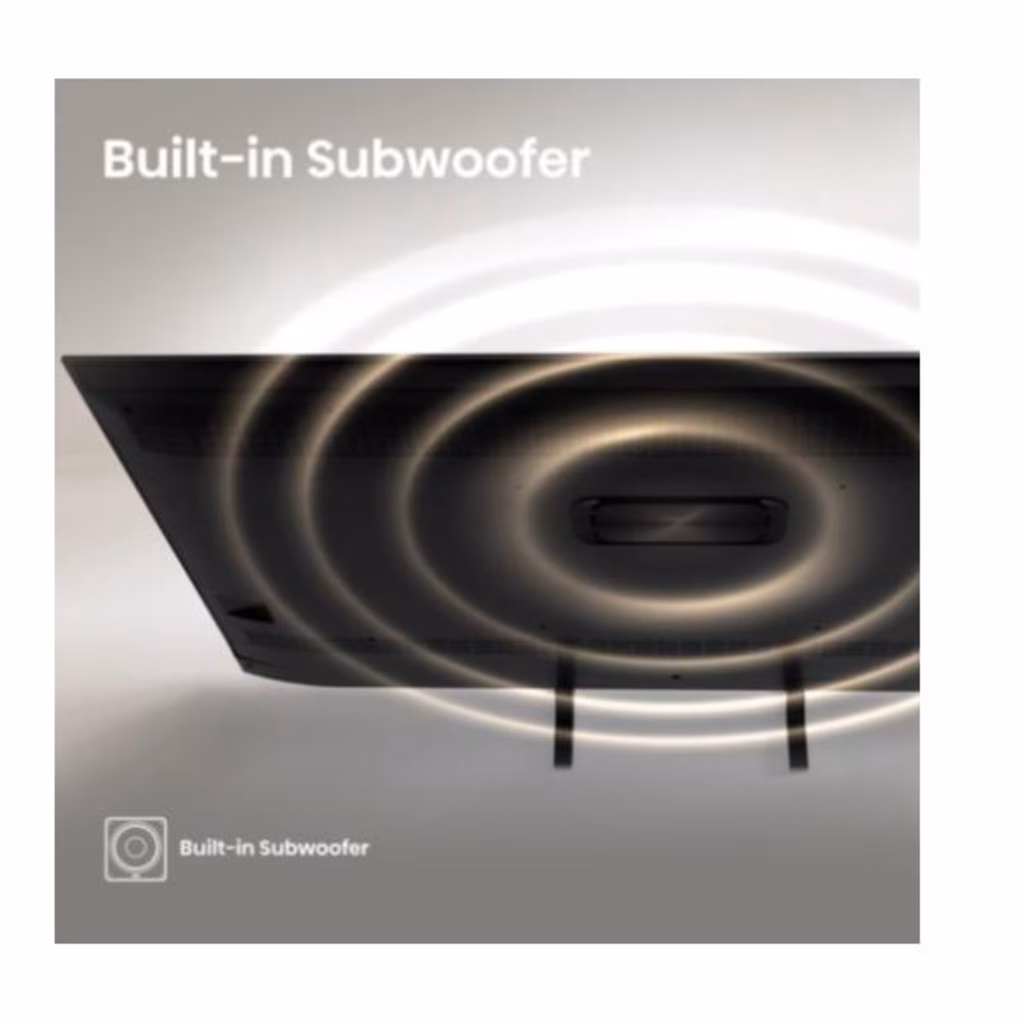 Il subwoofer integrato nel tuo televisore offre bassi profondi. Ascolta bassi profondi in ogni scena, dai ritmi più tenui delle canzoni ai più coinvolgenti film d'azione. Porta la tua esperienza audio a un nuovo livello.