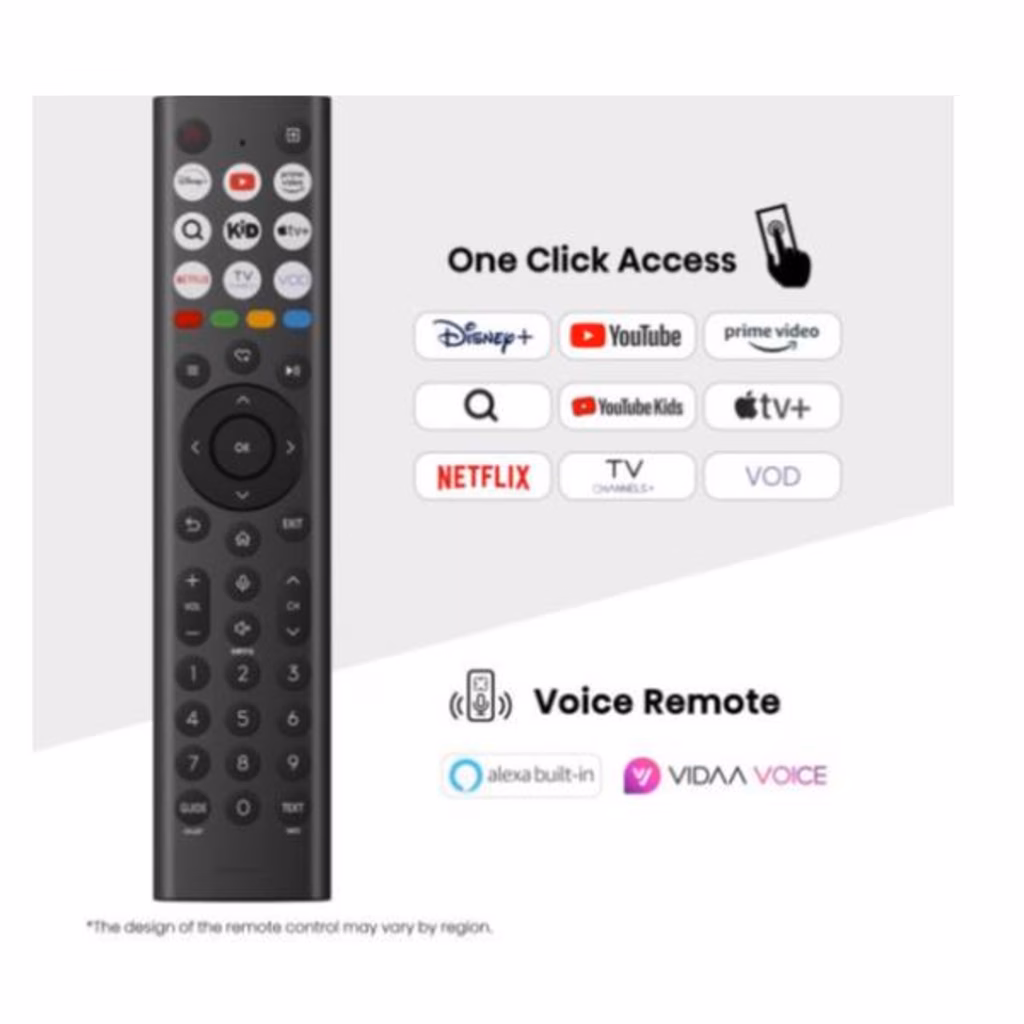 Prova il telecomando vocale Hisense e porta il controllo della TV a un livello superiore di comodità. Premendo un solo pulsante si attivano i comandi vocali. Naviga facilmente tra i programmi, regola il volume o interagisci con gli assistenti virtuali.
