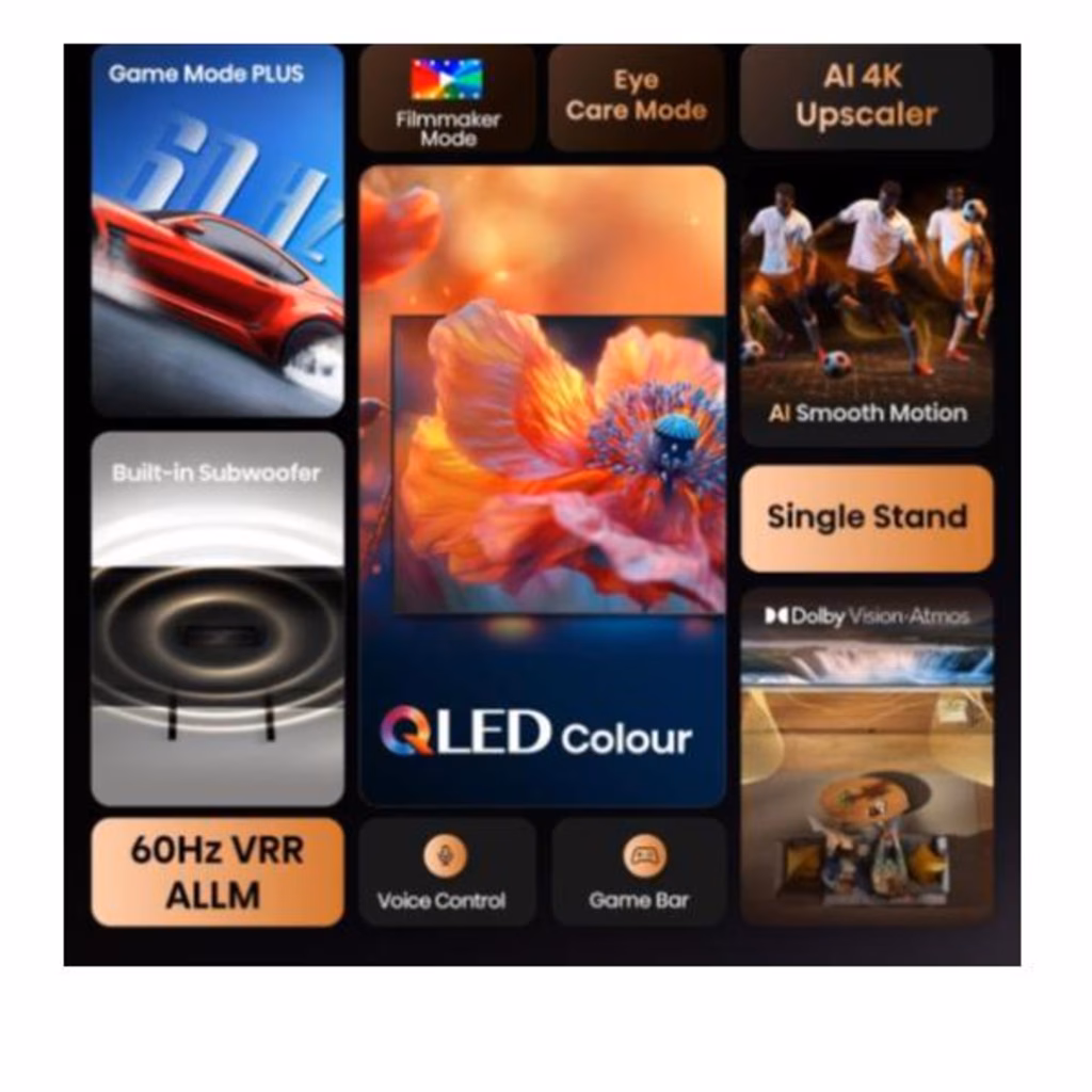 Vivi un'esperienza visiva indimenticabile con QLED Colour. Ogni montatura è ricca, vibrante e realistica, assicurando che ogni colore, dal più tenue al più vibrante, si distingua.