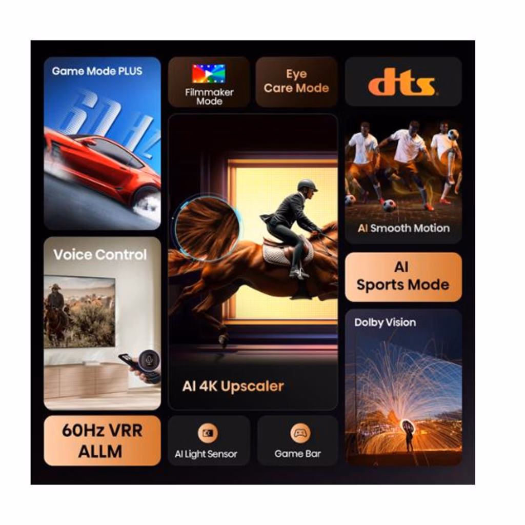 Sperimenta immagini fluide e realistiche con funzionalità avanzate come MEMC (Motion Estimation, Motion Compensation) e 3D Noise Reduction, integrate in un pannello altamente reattivo. Con la tecnologia AI Smooth Motion, il fastidioso motion blur appartiene al passato. Che si tratti di sport frenetici o di giochi ricchi di azione, ogni movimento e svolta improvvisa viene reso con nitidezza, assicurando che le scene dinamiche appaiano fluide e realistiche.