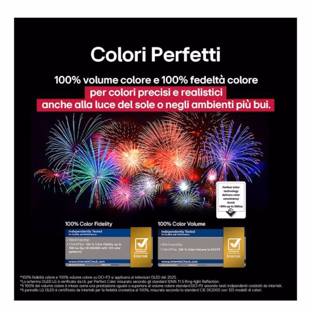 Questo TV è stato certificato da Intertek perché assicura una fedeltà cromatica al 100%, riproducendo colori realistici e autentici in ogni scenam, mantenendo intatti i dettagli originali. Inoltre, il volume colore al 100% consente di ottenere sfumature più ricche e intense, che donano profondità e vivacità, arricchendo ulteriormente l'esperienza visiva.