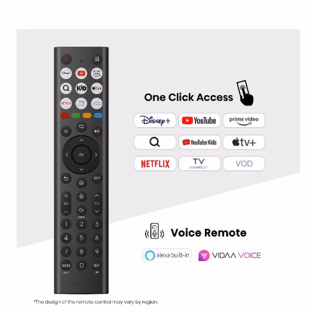 Prova il telecomando vocale Hisense e porta il controllo della TV a un livello superiore di comodità. Premendo un solo pulsante si attivano i comandi vocali. Naviga facilmente tra i programmi, regola il volume o interagisci con gli assistenti virtuali.