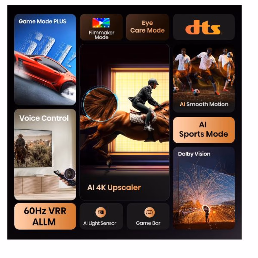 Sperimenta immagini fluide e realistiche con funzionalità avanzate come MEMC (Motion Estimation, Motion Compensation) e 3D Noise Reduction, integrate in un pannello altamente reattivo. Con la tecnologia AI Smooth Motion, il fastidioso motion blur appartiene al passato. Che si tratti di sport frenetici o di giochi ricchi di azione, ogni movimento e svolta improvvisa viene reso con nitidezza, assicurando che le scene dinamiche appaiano fluide e realistiche.