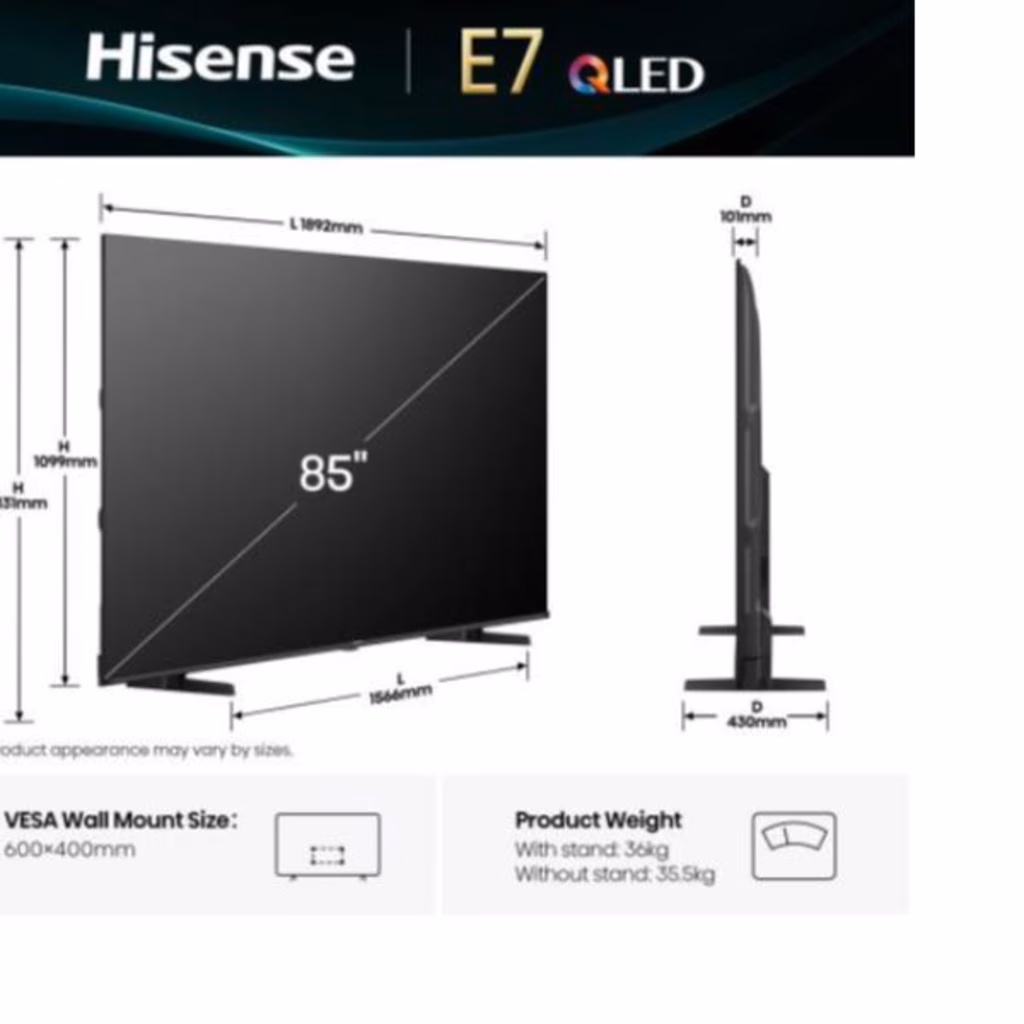 Tv 85" 4K (3840x2160) HISENSE 85 E79Q QLED 4K UHD SMART VIDAA 85E79Q