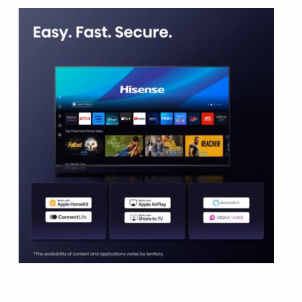Hisense Soundbar è progettata per funzionare in perfetta armonia con i TV Hisense. Funzionalità come Hi-Concerto, TV Mode, Room Fitting Tuning ed EzPlay creano un'esperienza audiovisiva fluida e unificata. *Hi-Concerto Room Fitting Tuning e TV Mode sono compatibili con modelli selezionati di TV e soundbar Hisense.
