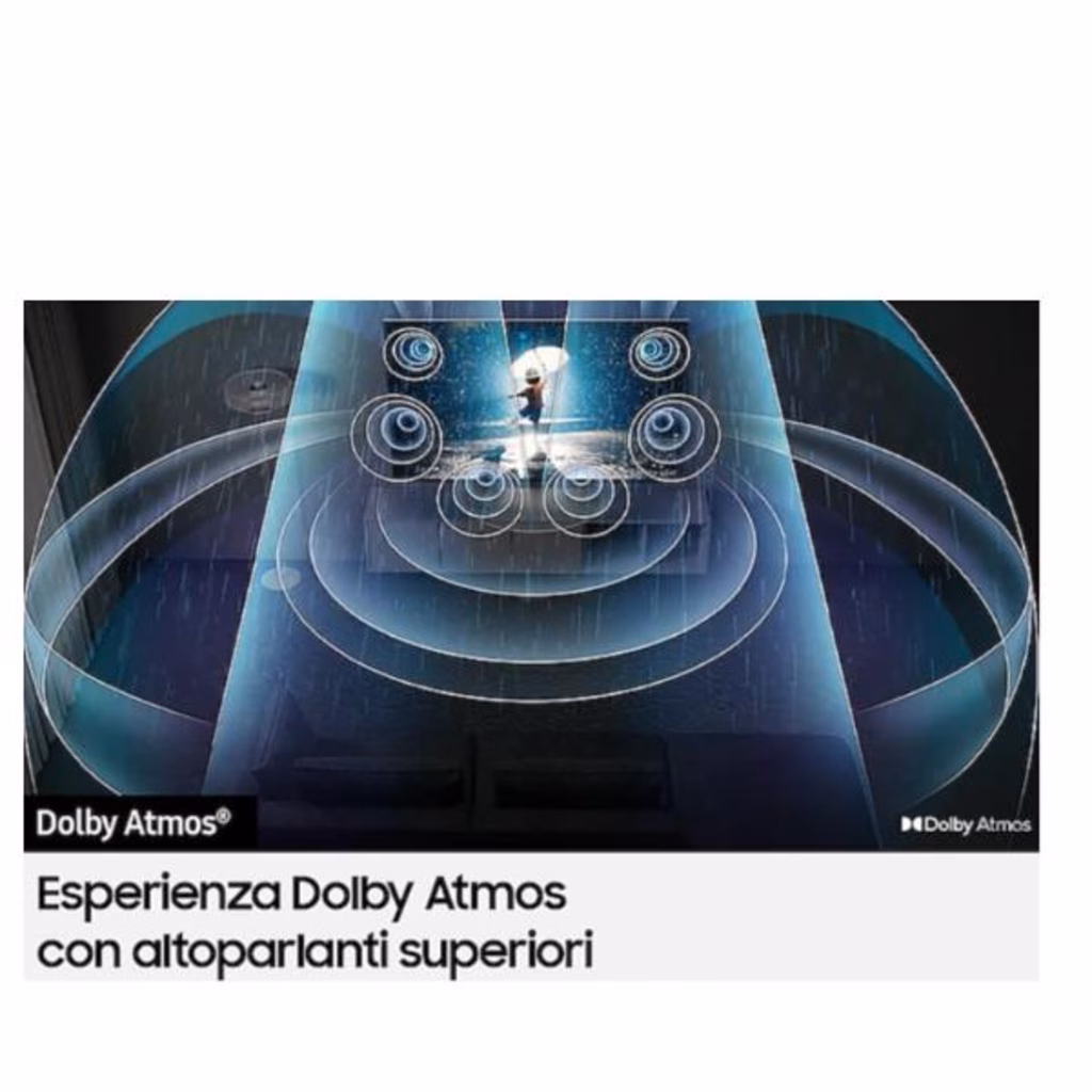 Gli altoparlanti superiori Samsung e il Dolby Atmos offrono un incredibile esperienza sonora che ti catapulta direttamente al centro dell azione con un audio multidimensionale.
