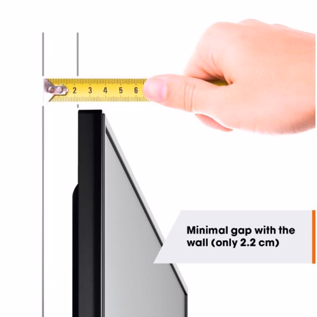 Montare la TV a parete in modo facile e veloce? Questo supporto a parete per TV della serie QUICK Fixed è la soluzione perfetta. Il supporto a parete per TV è adatto a TV da 19 a 50 pollici con peso fino a 30 kg. Ci sono solo 2,2 cm tra la TV e la parete. Il supporto a parete per TV QUICK Fixed non può essere ruotato né inclinato. È quindi ideale per le situazioni in cui ti siedi direttamente davanti alla TV.