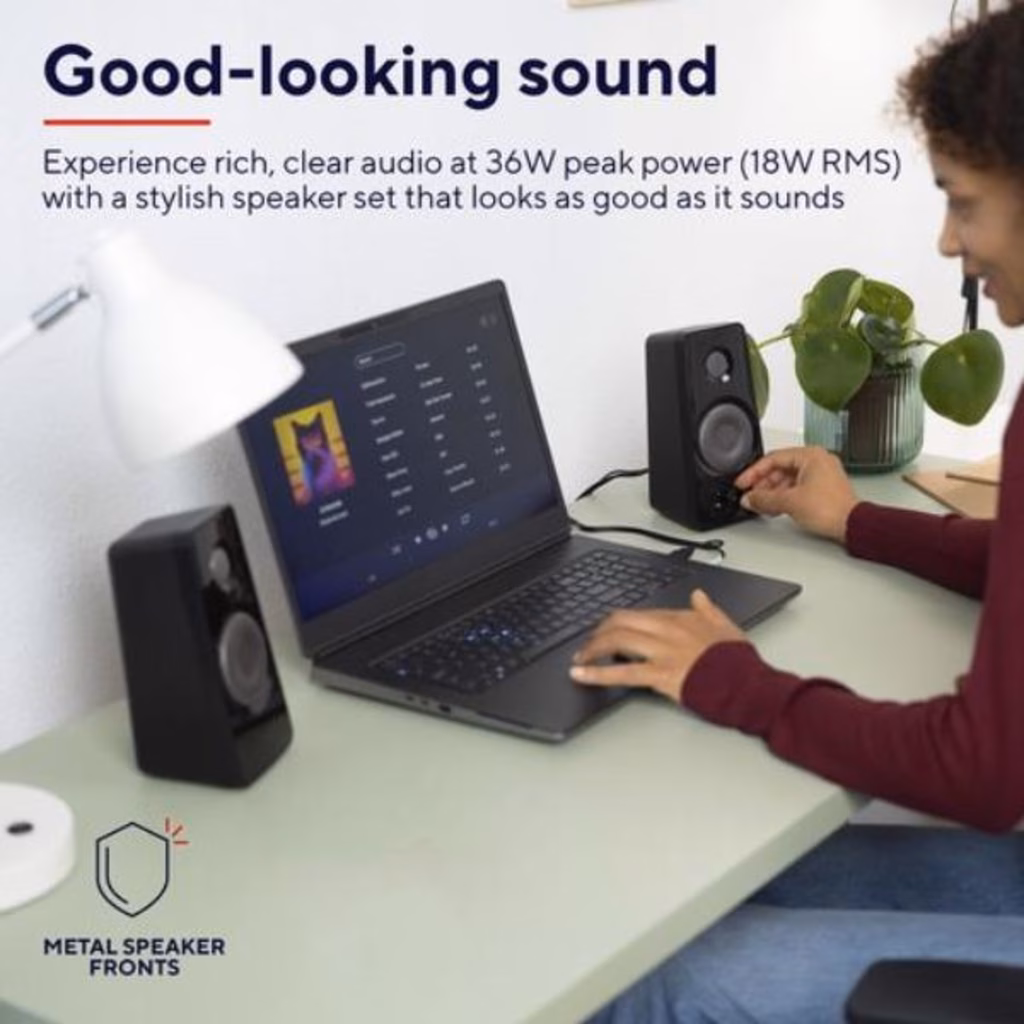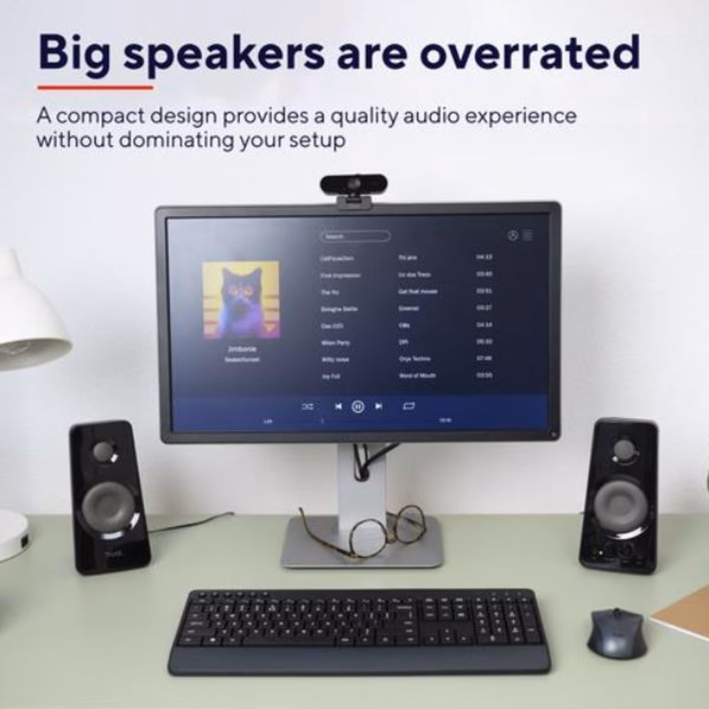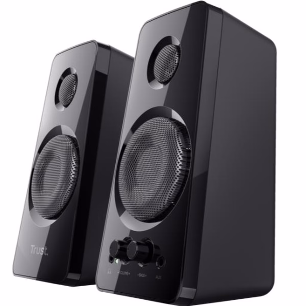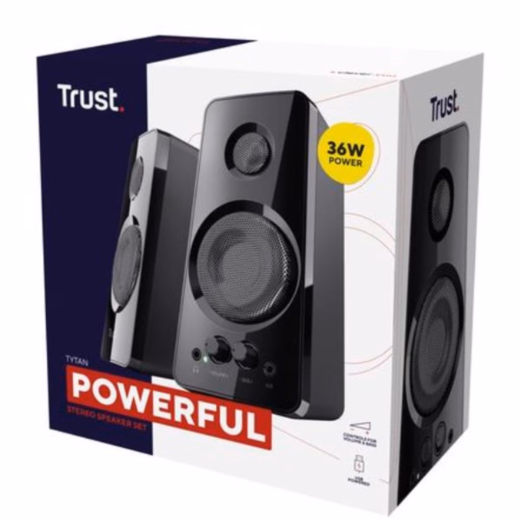 Il set di altoparlanti Trust Tytan 2.0 rappresenta un complemento raffinato alla configurazione del PC o del laptop. Basterà inserire la spina degli altoparlanti per ottenere suoni stereo cristallini a casa e in ufficio.
