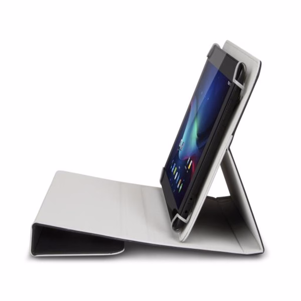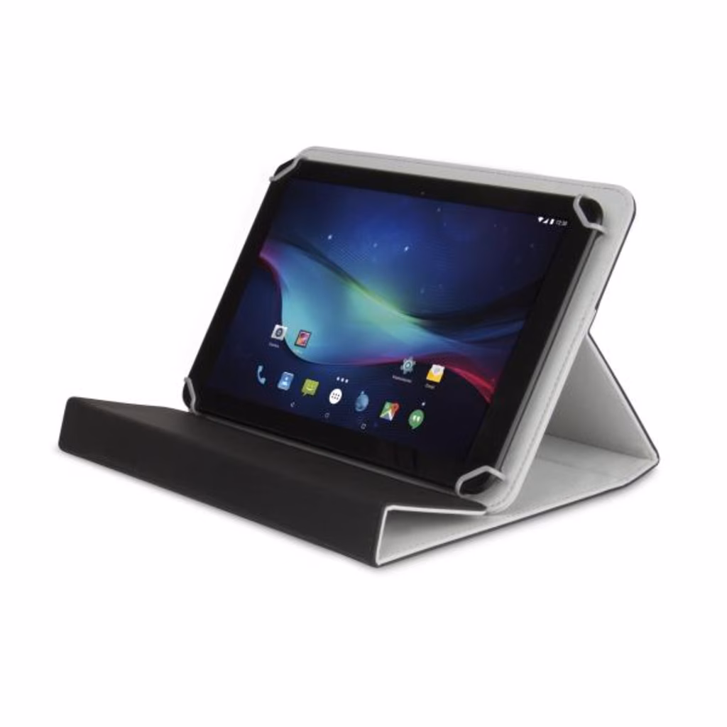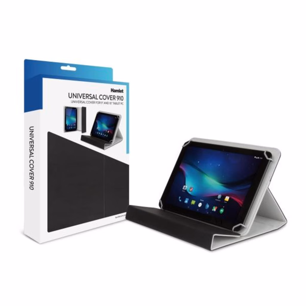 Hamlet Universal Cover 100 è una pratica custodia protettiva universale disegnata per Tablet da 9" e 10" che permette di trasportare e utilizzare il Tablet proteggendolo al contempo da graffi e urti. La custodia può essere facilmente ripiegata ed utilizzata come supporto per posizionare il Tablet con l'inclinazione ideale per una digitazione confortevole e la massima comodità di lavoro. Il Tablet è assicurato alla custodia tramite apposite clip che lasciano libero accesso ai pulsanti e alle porte laterali. La chiusura avviene tramite un lembo magnetico.