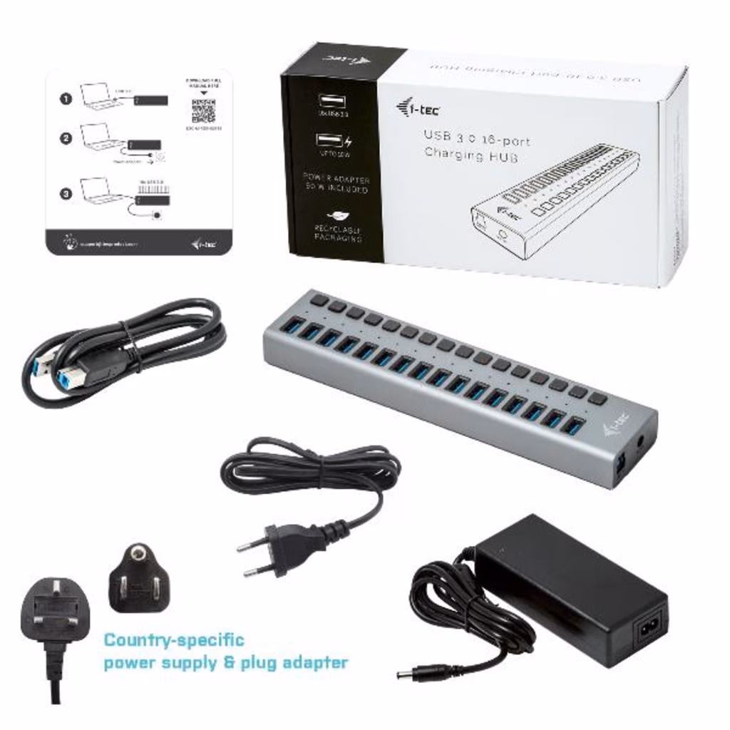 I-TEC - USB 3.0 Charging HUB 16port + Power Adapter 90 W