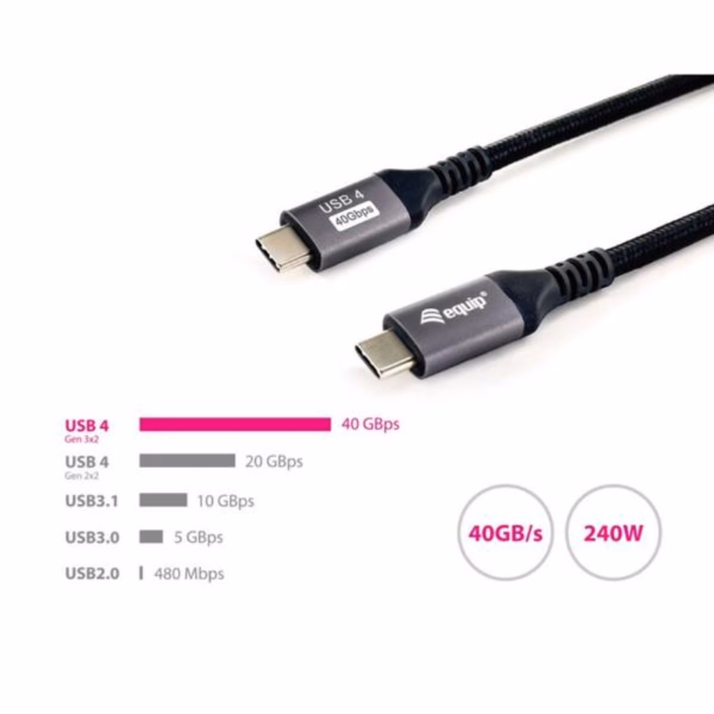 Il cavo C to C di equip 128381 USB 4 Gen 3 è una soluzione avanzata per il trasferimento di dati ad alta velocità e l'erogazione di energia. Costruito con la tecnologia USB 4, questo cavo offre velocità di trasferimento dati fulminee fino a 40 Gbps, consentendo trasferimenti rapidi di file e streaming multimediale senza interruzioni.