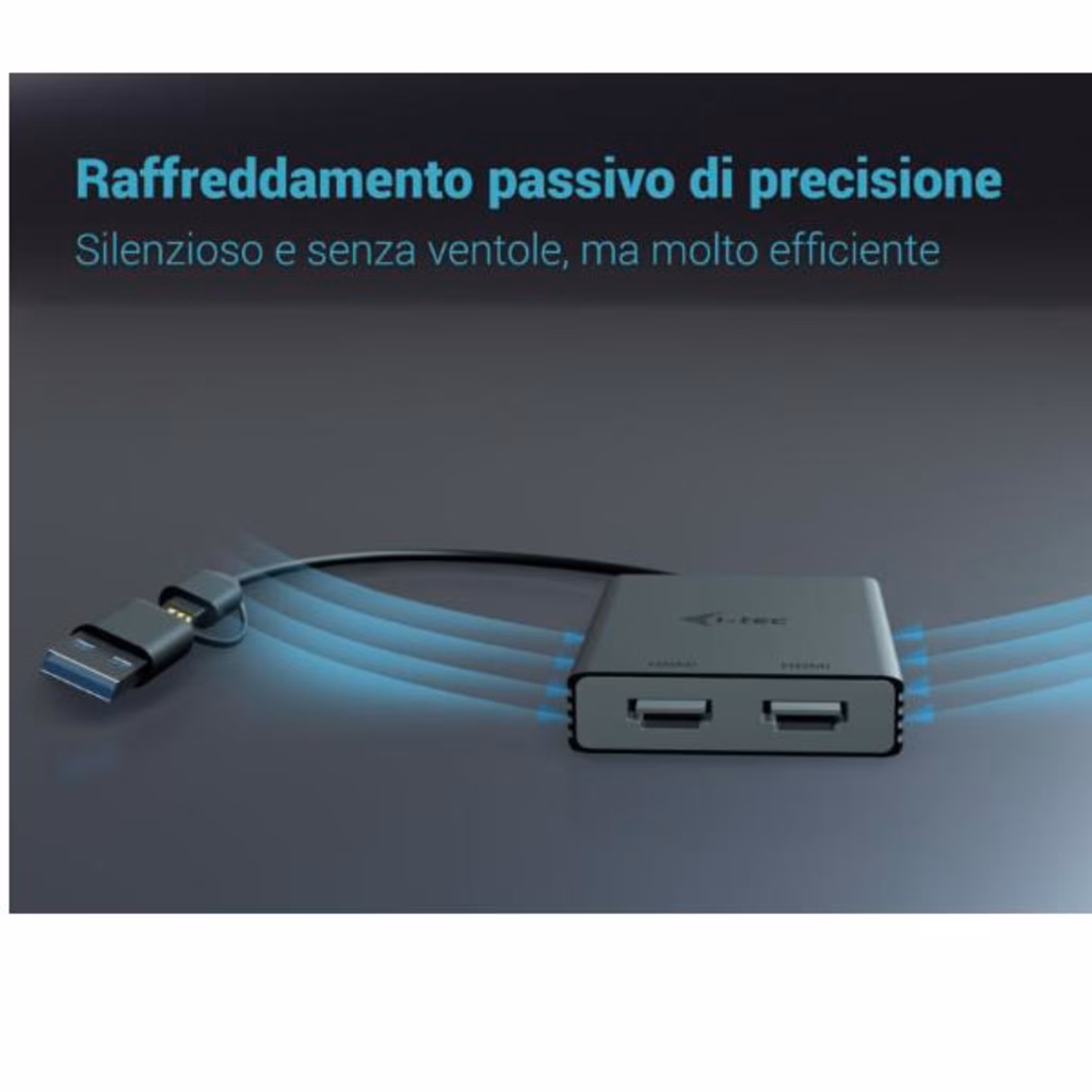 i-tec USB-A/USB-C Dual 4K/60 Hz HDMI Video Adapter