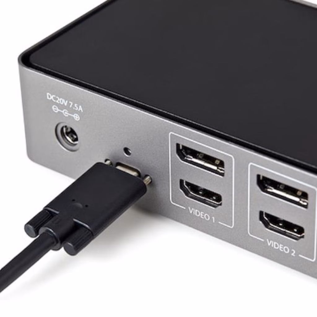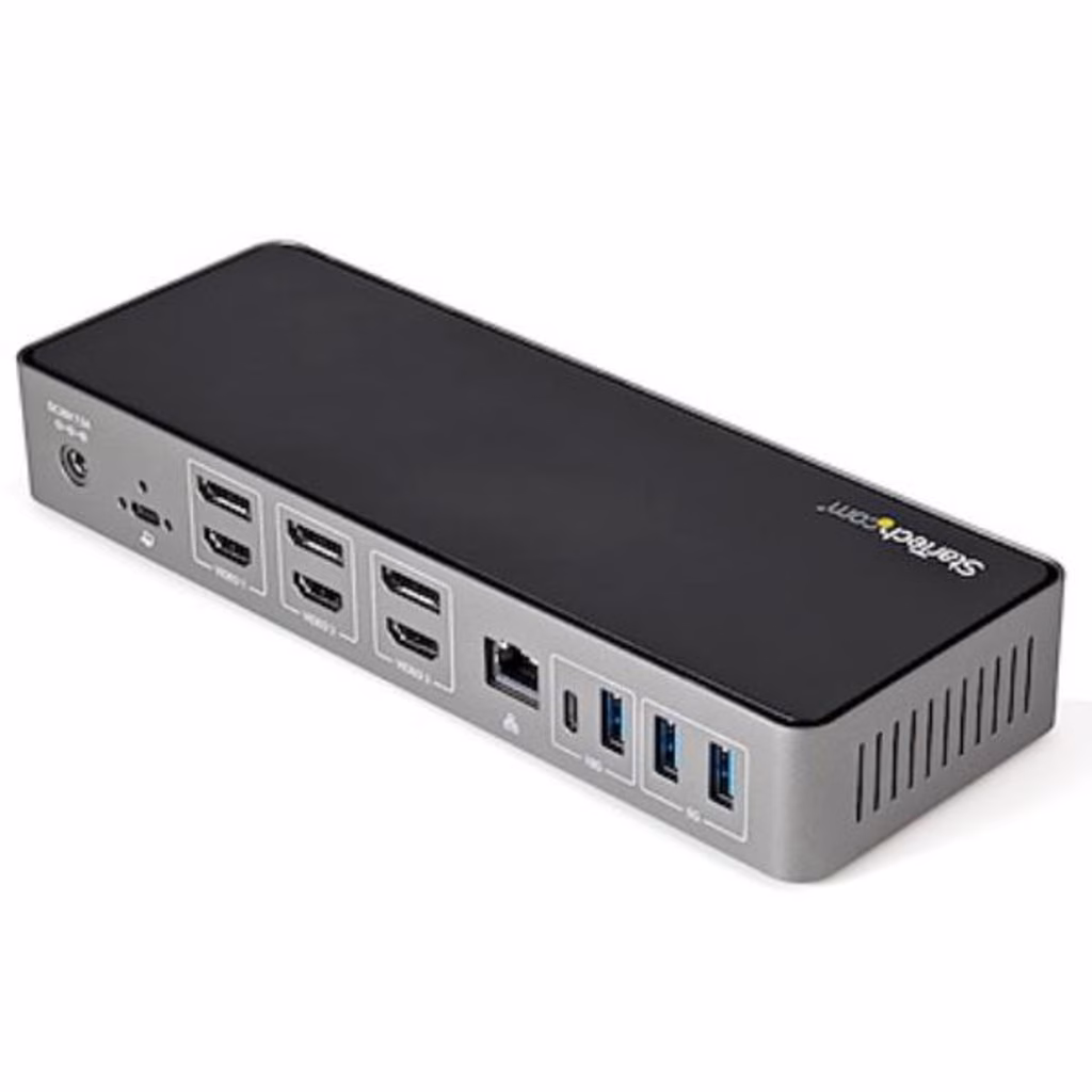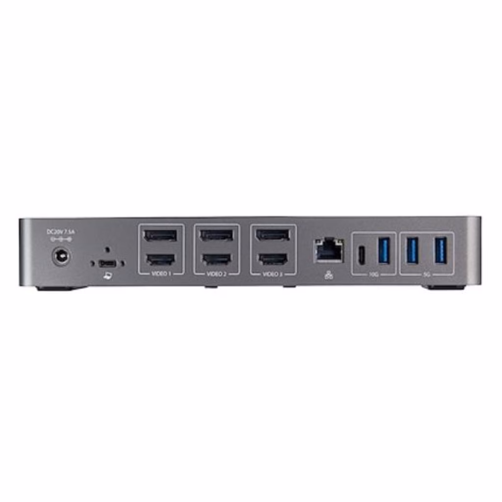 Questa docking station USB-C Gen 2 da 10 Gbps consente di trasformare un MacBook Pro, un laptop Windows o un Chromebook con tecnologia USB-C® o Thunderbolt™ 3 in una potente workstation. La docking station USB 3.2 Gen 2 Type-C offre tutto ciò di cui si può aver bisogno: dalle triple uscite video HDMI o DisplayPort con risoluzione fino a 4K a 60 Hz alle porte per periferiche downstream USB-C e USB-A da 10 Gbps e Power Delivery da 85 W.  I notebook USB-A meno recenti sono supportati tramite il cavo ibrido universale USB-C/USB-A incluso.Uscite HDMI e DisplayPort per tre monitorQuesta docking station USB-C Gen 2 con supporto le tecnologie DP 1.4 e HDMI 2.0 HDR è la scelta perfetta per una configurazione a due o tre monitor, in quanto supporta fino a tre display 4 a 60 Hz con qualsiasi combinazione delle tre interfacce video DisplayPort o HDMI, su laptop USB-C Gen 2 (con supporto della tecnologia DP 1.4), MacBook e laptop Thunderbolt 3 basati su Windows. I laptop USB-A meno recenti supportano solo la configurazione a due monitor.HostUscita displayUSB-C Gen 1 o 2 (con DP 1.4)Tre display 4K a 60 HzThunderbolt 3 (DP 1.4 supportato)Tre display 4K a 60 Hz