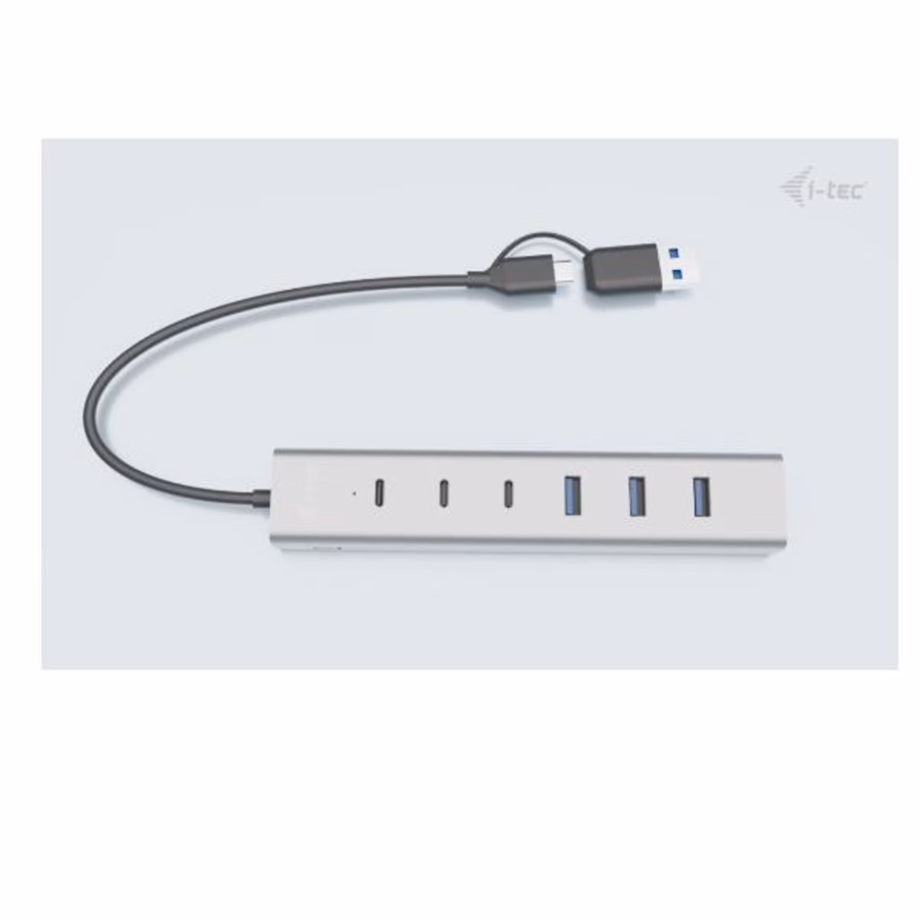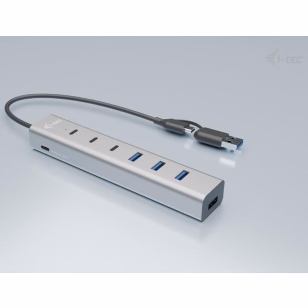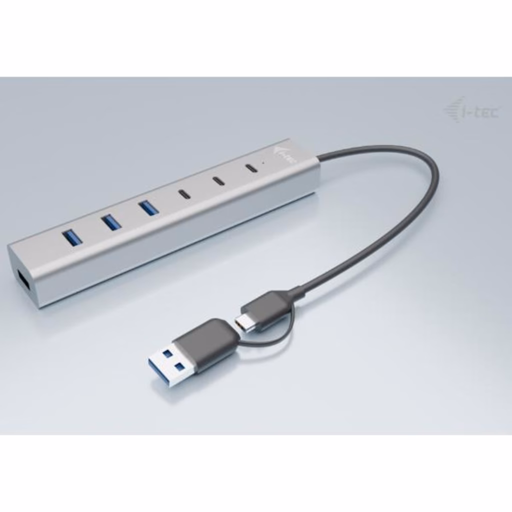 Le porte USB-A, USB-C, USB4 e Thunderbolt 3 o 4 sono sempre più diffuse nei computer portatili e nei tablet di oggi. Con l aumento del loro utilizzo, il numero di porte USB sul corpo dei computer portatili sta diminuendo. Se avete bisogno di collegare accessori al vostro dispositivo che non dispone più di porte sufficienti, potete utilizzare questo piccolo ma pratico hub che supporta anche la ricarica attiva.Questo hub offre 7 porte USB aggiuntive (4x USB-A e 4x USB-C). Collegate una tastiera e un mouse esterni, trasferite dati o filmati da un unità flash USB fino a 5 Gbps o ricaricate i vostri dispositivi mobili fino a 7,5W.L Hub non richiede l installazione di driver, basta collegarlo con il cavo USB-C o USB-A per iniziare a usarlo subito. L hub è dotato di una protezione integrata contro le sovratensioni per il computer in caso di cortocircuito delle periferiche. Grazie alle sue dimensioni compatte e alla sua leggerezza, è possibile portarlo sempre in borsa; la superficie metallica protegge l hub da danni e graffi.L hub supporta la ricarica tramite un adattatore esterno USB-C fino a 15W (5V, 3A)*.* L adattatore non è incluso. 1x cavo USB-A/USB-C integrato per il collegamento al dispositivo (30 cm) 1x porta USB-C per collegare un hub di alimentazione supplementare fino a 15W (5V 3A)*. 3x USB-C 3.2 Gen 1 con supporto alla ricarica rapida BC 1.2 (fino a 7,5W per porta) 4x USB-A 3.2 Gen 1 con supporto alla ricarica rapida BC 1.2 (fino a 7,5W per porta) Indicazione LED di alimentazione dell HUB SISTEMA OPERATIVO: Windows 10/11, macOS, Android, Chrome OS, iPadOS e Linux con gli ultimi aggiornamenti Dimensioni del prodotto: 157 x 30 x 21 mm Peso del prodotto: 78 g * Caricatore USB non inclusoRequisiti hardware: Dispositivo con porta libera USB-A, USB-C, USB4 o Thunderbolt 3/4 Sistema operativo: OS: Windows 10/11, macOS, Android, Chrome OS, iPadOS e Linux con gli ultimi aggiornamenti