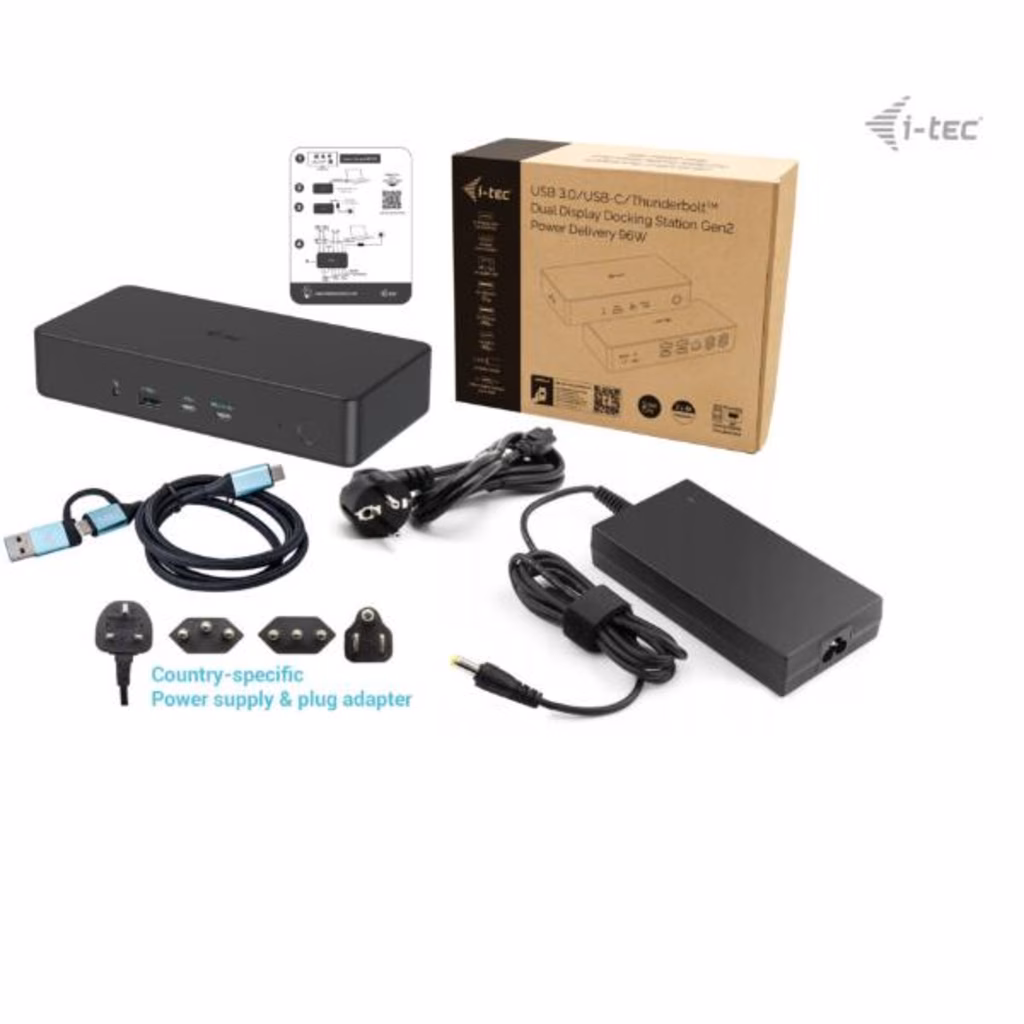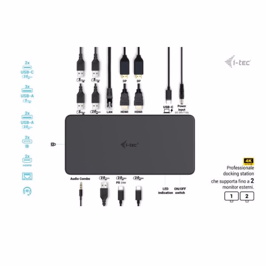 CADUA4KDOCKPD2IT i-tec USB 3.0 / USB-C / Thunderbolt 3 Professional Dual 4K Display Docking Station Generation 2 + Power Delivery 100W