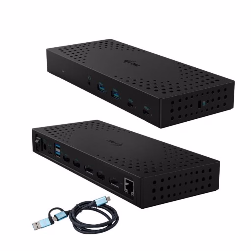 Una potente docking station professionale Gen 2 che supporta l output fino a tre monitor esterni in alta risoluzione 4K. Il dock può essere utilizzato praticamente con tutti i notebook in quanto supporta la connessione a tutte le porte più comuni: USB 3.0, USB-C e Thunderbolt 3/4, e supporta tutti i più comuni sistemi operativi attuali. Tuttavia, il collegamento a tre monitor sarà possibile solo se il notebook dispone di una porta Thunderbolt 3/4 o di una porta USB-C che supporta il trasferimento video (modalità USB-C DP Alt). Se collegato a un notebook con porta USB 3.0, saranno supportati solo due monitor.
