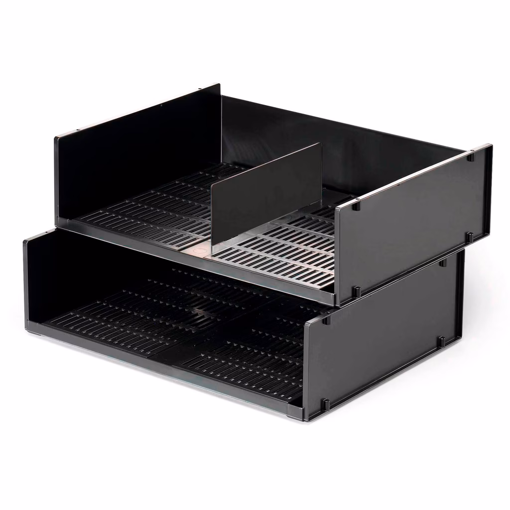 Vaschette portacorrispondenza Nera A3 per un facile accesso ai documenti Impilabili e utilizzabili con distanziatori opzionali (cod. art. 1700132001) Prodotto ecosostenibile certificato Blue Angel, realizzato per almeno l80% con materiale riciclato post-consumo In plastica resistente e di alta qualità Estremamente durature Per documenti formato A3 orizzontale o due A4 verticale