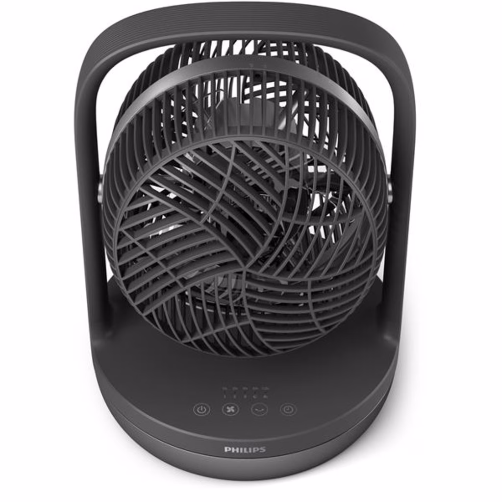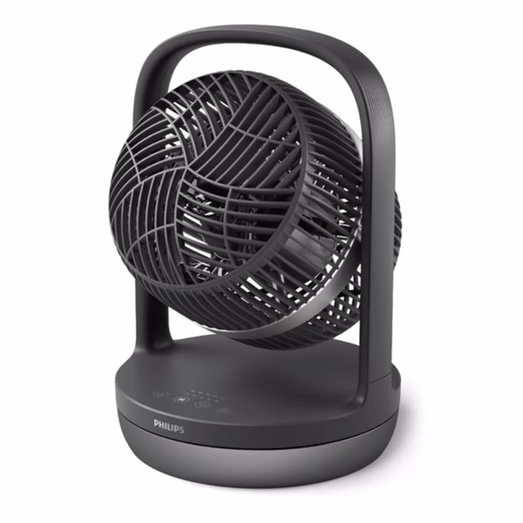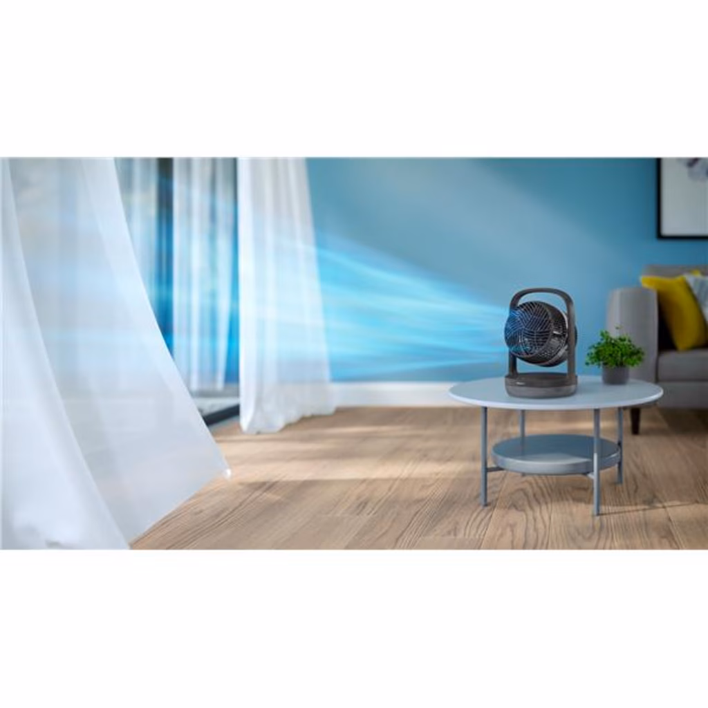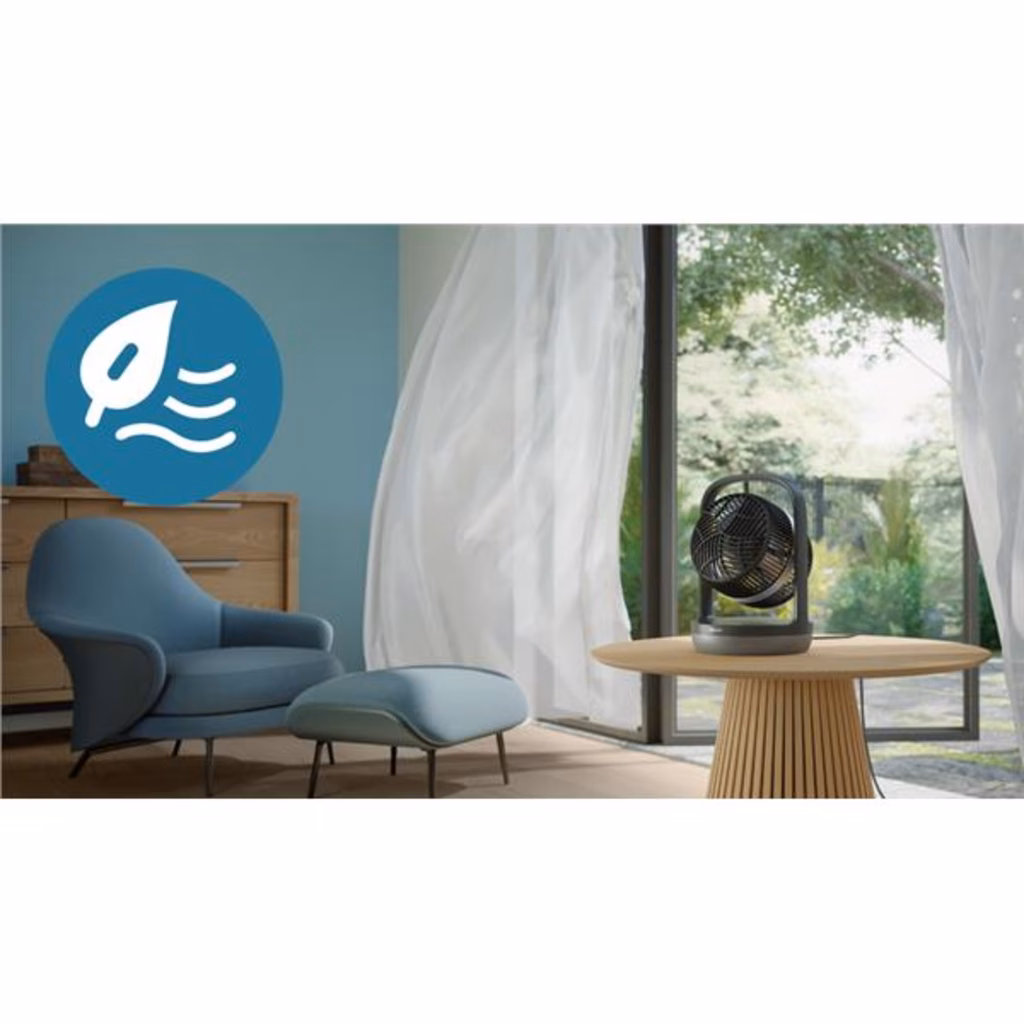 Philips 3000 series Ventilatore da tavolo Serie 3000 CX3050/01, Flusso d'aria 738 m³/h, Ultra silenzioso 23db30% più silenzioso (1) con la tecnologia per lame silentwings Potenza silenziosa. eleganza compatta. Il massimo del raffreddamento al minimo del rumore. Il ventilatore si adatta a qualsiasi arredamento d'interni e raffredda il tuo ambiente senza fare rumore. Personalizza la tua esperienza con 3 velocità, 2 modalità e un timer e, con la testa inclinabile e la funzione di rotazione, godrai di un migliore ricircolo dell'aria.Raffreddamento potente avvertito anche a distanzaFlusso di aria a lungo raggio che può raggiungere fino a 25 metri. Goditi il massimo del comfort e rinfrescati ovunque ti trovi: tutti nella stanza infatti sentiranno la fresca brezza.Ampio flusso di aria per un ricircolo dell'aria nell'intera stanzaUna brezza delicata ti avvolgerà grazie a questo ventilatore con ricircolo dell'aria e un flusso di aria a lungo raggio di 738 m³/h. Niente più aria stagnante: goditi invece una brezza rinfrescante che raggiunge tutti gli angoli della stanza.Raffreddamento 30% più silenzioso, grazie alla tecnologia SilentWingsLa nostra innovativa tecnologia SilentWings assicura un 30% in meno di rumore (1). Ispirandoci alle ali del volatile più silenzioso del mondo animale, il gufo, abbiamo ideato un design delle lame dei ventilatori in grado di raffreddare facendo molto meno rumore, a una velocità di appena 23 dB(A) (2). Praticamente un sussurro!Progettato per durare, con una qualità altamente testataRealizzato per durare stagione dopo stagione. Con oltre 80 anni di esperienza nella cura dell'aria, Philips esegue oltre 110 rigorosi test sui suoi ventilatori a torre prima di metterli in commercio, per accertarne le eccezionali qualità e prestazioni.Notti sempre fresche con la modalità silenziosaGoditi una notte di sonno fresco e tranquillo con la modalità silenziosa. Questa modalità riduce gradualmente la velocità della ventola all'impostazione più bassa consentendoti di addormentarti in modo naturale e risparmiando energia.Modalità Brezza naturale per aria frescaLa modalità Brezza naturale imita l'alito di aria fresca. L'intensità e la velocità dell'aria alternano agevolmente alti e bassi, creando un'esperienza naturale e rinvigorente anche in casa, per tutto l'anno.Comfort personalizzato con modalità versatiliQuesto versatile ventilatore, con 3 velocità, una modalità Brezza naturale e una modalità silenziosa, offre una brezza delicata ma anche un flusso di aria più potente. Scegli tu l'impostazione più adatta alle tue esigenze: rilassati e goditi la frescura.Rotazione automatica per un ambiente fresco in ogni angoloQuesto ventilatore, che si inclina fino a 180° e ruota automaticamente, ti permette una personalizzazione che asseconda le tue necessità, per un flusso di aria rinfrescante esattamente nel momento in cui ti serve, tramite raffreddamento diretto o ricircolo dell'aria per tutta la stanza.Design compatto e modernoCon un design a lame nascoste, che assicurano un aspetto ordinato e minimalista, il nostro ventilatore unisce agevolmente comodità e semplicità. Compatto e discreto, consente di risparmiare spazio senza compromettere le prestazioni.Facile da trasportare e da pulireDesign da tavolo che consente di risparmiare spazio, senza sacrificare le prestazioni. Questo ventilatore pesa solo 2,4 kg, perciò è facile da trasportare e può essere posizionato comodamente su un tavolo o sul comodino per la notte. È progettato inoltre in modo tale da pulirlo con facilità: basta una veloce passata con un panno umido.Risparmia fino a 130 kWh sulla bolletta dell'elettricità per il condizionatoreGrazie al nostro ventilatore, potrai aumentare il termostato del tuo condizionatore di 5° senza sacrificare il comfort, risparmiando al contempo 130 kWh all'anno, vale a dire 35 in meno sulle bollette. Inoltre, è efficiente dal punto di vista energetico, poiché consuma massimo 27W, praticamente meno di una lampadina tradizionale, e 90 volte meno di un condizionatore portatile standard. (3)Organizza le tue esigenze con la funzione timerGoditi un'esperienza di raffreddamento personalizzata con la comodissima funzione timer, che ti permette di pianificare con 12 ore di anticipo.