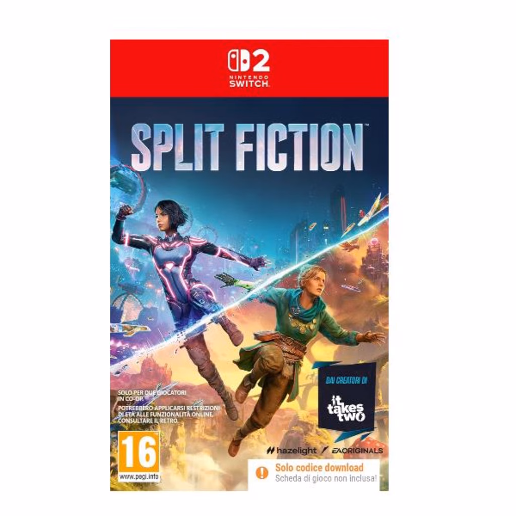 Vivi momenti unici mentre ti immergi nei numerosi mondi di Split Fiction, l'innovativo gioco d'azione e avventura cooperativo creato dallo studio di It Takes Two, vincitore del premio Game of the Year 2021. Mio e Zoe sono scrittrici agli antipodi: una ama la fantascienza, l'altra il fantasy. Dopo essere state collegate a un macchinario progettato per privarle delle loro idee creative, entrambe restano intrappolate nelle rispettive storie. Dovranno quindi fare affidamento l'una sull'altra per liberarsi senza perdere i propri ricordi, collaborando per apprendere nuove abilità e superare sfide sempre diverse mentre esplorano mondi immaginari in una sorprendente storia di amicizia.