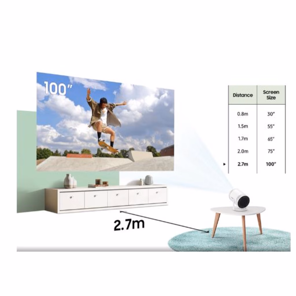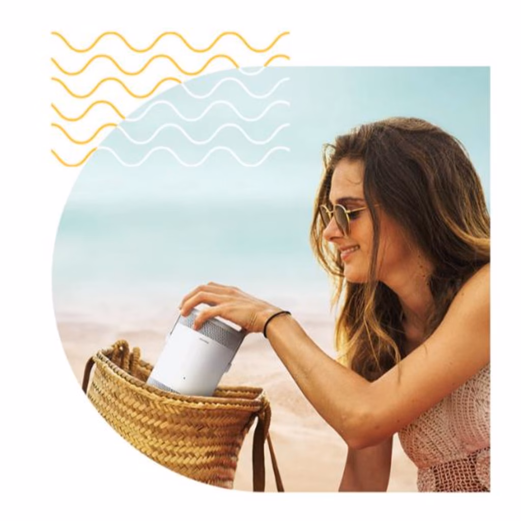 Vivi l'intrattenimento con The Freestyle di 2° generazione. Design compatto e supporto integrato. Installa The Freestyle e inizia a proiettare i tuoi contenuti preferiti su diverse superfici regolando l'angolazione grazie al supporto integrato. Configurazione facile e veloce grazie alla regolazione e ottimizzazione automatica dello schermo. È sufficiente posizionare The Freestyle nel punto desiderato: lo schermo si regola automaticamente e corregge le immagini oblique, senza dover spostare il dispositivo. Il potente altoparlante integrato di The Freestyle assicura un audio ottimale che si diffonde a 360° e che regala un esperienza sonora immersiva ovunque tu sia.