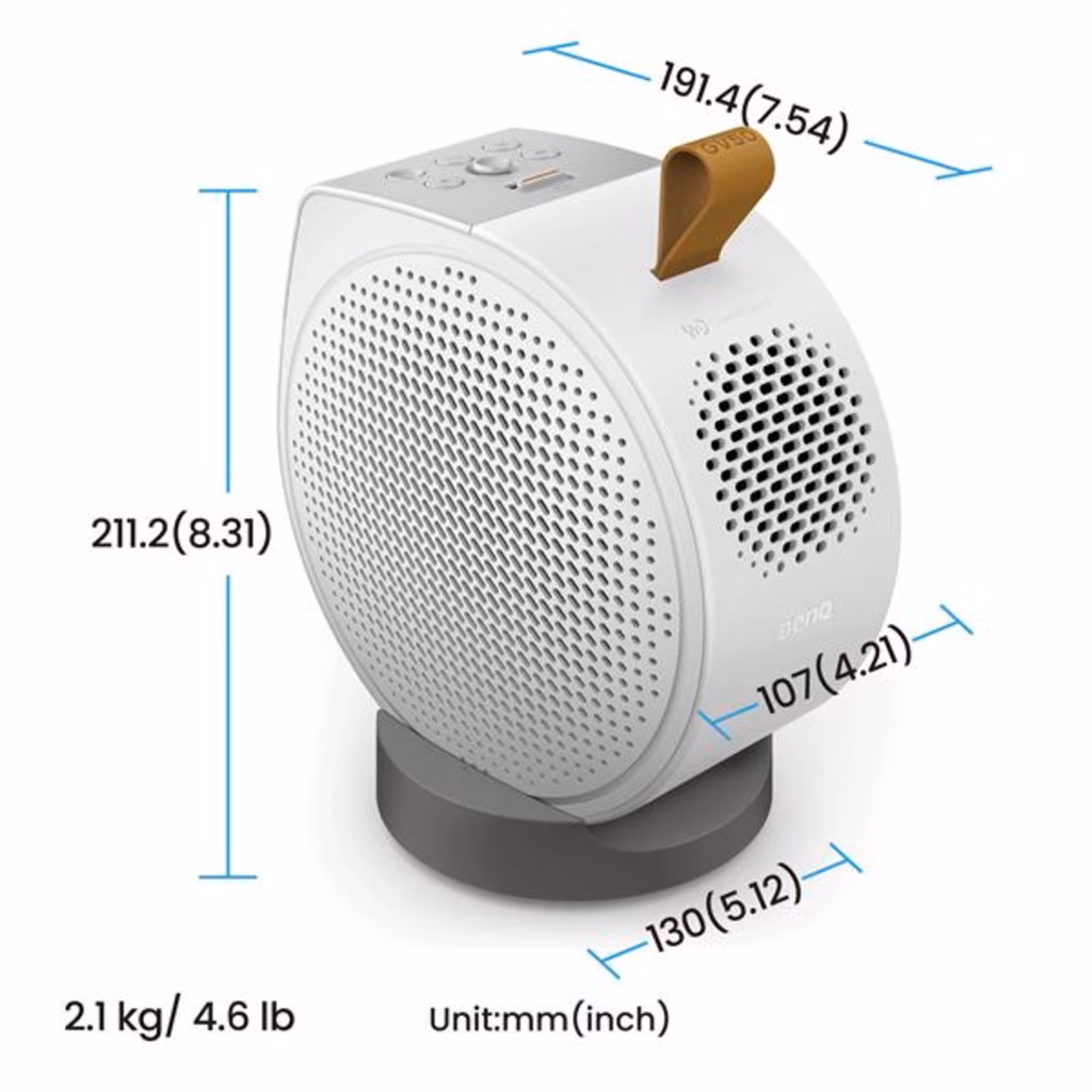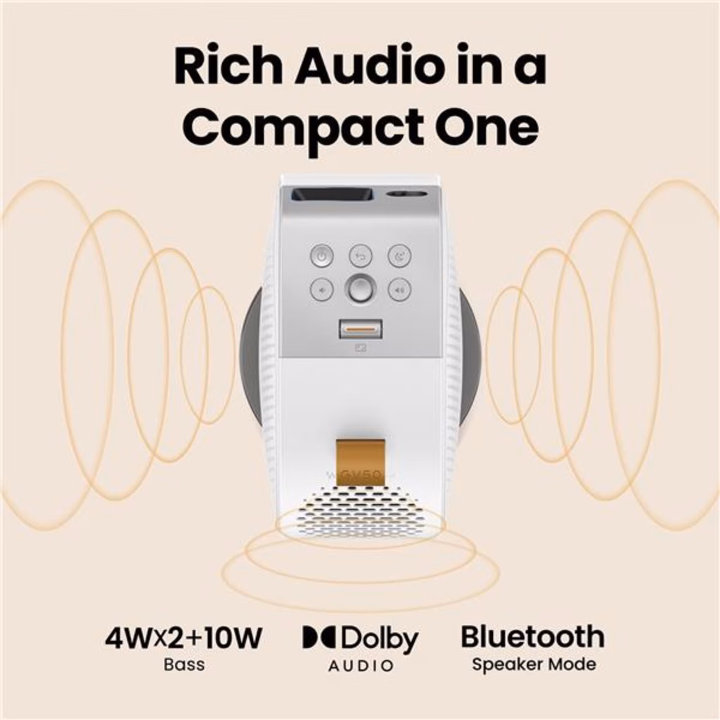 BenQ GV50, 500 ANSI lumen, DLP, 1080p (1920x1080), 100000:1, 16:9, 2032 - 2540 mm (80 - 100")BenQ GV50. Luminosità proiettore: 500 ANSI lumen, Tecnologia di proiezione: DLP, Risoluzione nativa del proiettore: 1080p (1920x1080). Tipo di sorgente luminosa: Laser, Durata della sorgente luminosa: 20000 h, Durata della sorgente luminosa (modalità risparmio): 30000 h. Messa a fuoco: Auto, Tipo di zoom: Fisso, Offset: 100%. Modalità colore video: Cinema luminoso, Cinema, Personalizzato, Gioco, Notte. Versione HDMI: 2.0b