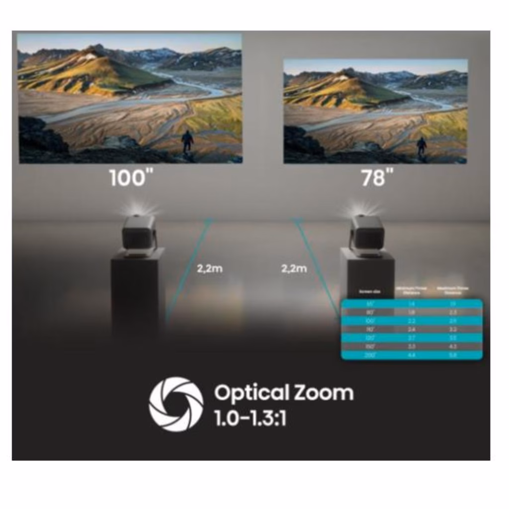 Ingrandisci e riduci l'immagine senza compromettere la nitidezza o la chiarezza. Lo zoom flessibile con rapporto di proiezione 1.0-1.3 mantiene sempre la risoluzione 4K, indipendentemente dalla distanza.
