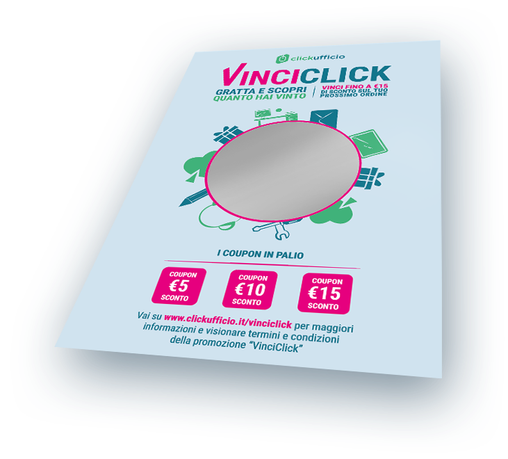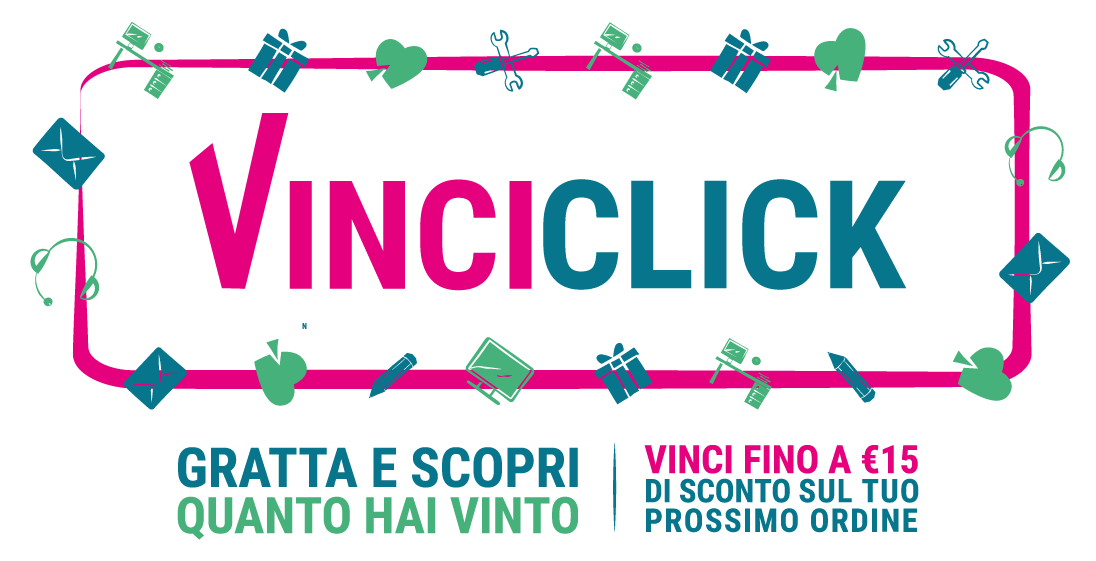 Dal 01.01.24 fino ad esaurimento scorte, puoi ricevere, con un ordine di almeno 80 Euro IVA esclusa, una card Vinciclick. L'ordine deve avere all'interno almeno un prodotto in pronto magazzino.