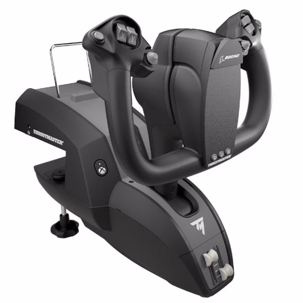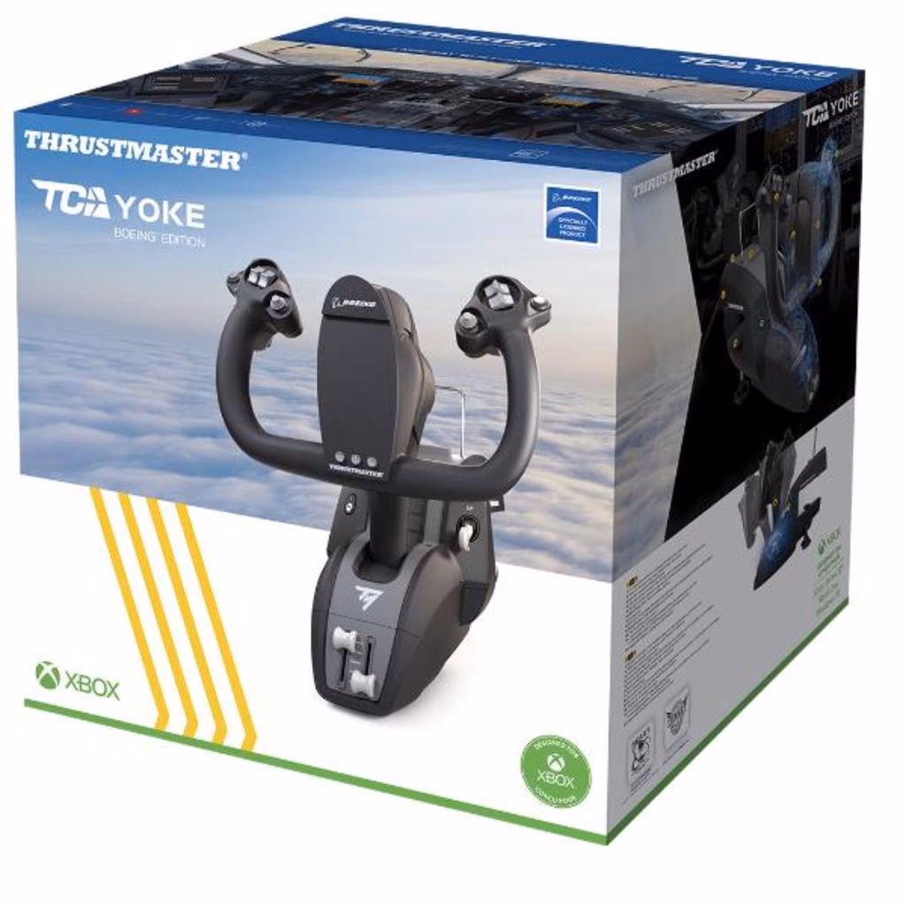 TCA Yoke Boeing Edition è un sistema di pilotaggio, accompagnato da licenze ufficiali Boeing e Xbox, per Xbox One e Xbox Series X|S. È anche PC compatibile. TCA Boeing Edition, la nuova punta di diamante della gamma Thrustmaster dedicata al volo civile, è un linea di prodotti caratterizzata da nuove e innovative funzioni e concepita con uno scopo ben preciso: replicare i vari comandi, le sensazioni e le cinematiche di volo cui sono abituati i veri piloti Boeing ai comandi di un aereo di linea 787.