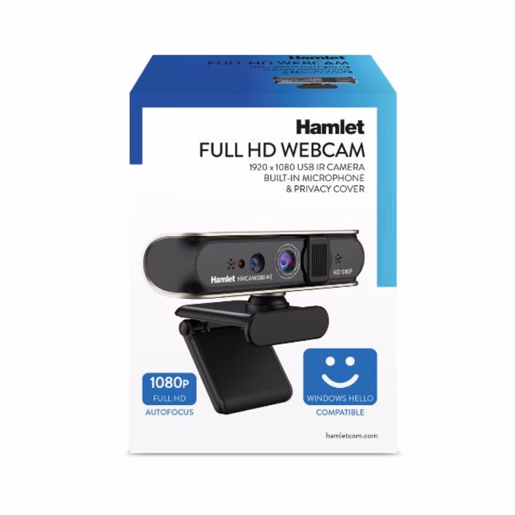 HWCAM1080-HE è una Webcam Full HD 1080p dotata di videocamera a colori e seconda videocamera a infrarossi per il riconoscimento facciale compatibile con Windows Hello. La risoluzione Full HD 1080p in formato panoramico 16:9 e il doppio microfono integrato la rendono ideale per utilizzo in videoconferenza con i principali software di comunicazione come Skype, Skype for Business, Microsoft Teams, Zoom, Cisco Webex, Hangouts meet, Slack, Google Meet. La registrazione video Full HD a 30fps offre immagini chiare, fluide e nitide sia per le videoconferenze su Skype che lo streaming su YouTube. La cover scorrevole integrata permette di coprire l'obiettivo della webcam quando questa non è in uso per garantire la massima privacy. La webcam è inoltre dotata di doppio microfono omnidirezionale con funzione di riduzione del rumore per filtrare i disturbi ambientali e garantire un suono chiaro e pulito in ogni situazione. La base di supporto snodabile permette di agganciare facilmente la webcam al monitor o usarla semplicemente appoggiata sulla scrivania per la massima comodità di utilizzo. Grazie all'installazione Plug&Play senza necessità di driver, la webcam viene riconosciuta automaticamente dal sistema operativo una volta collegata alla porta USB del computer.