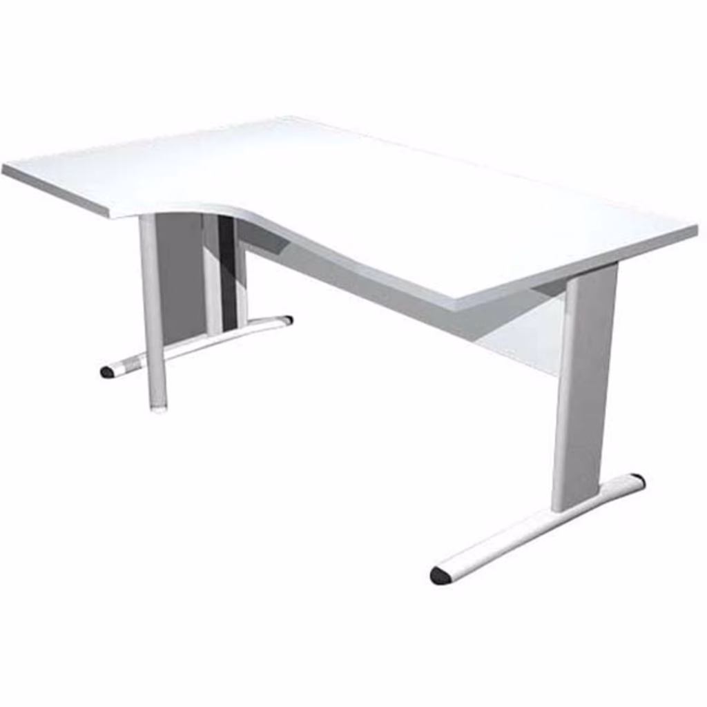 Scrivanie con dimensioni conformi alle normative sulla sicurezza dei posti di lavoro in ufficio. BORDATURA dei piani in ABS 3 mm ANTISHOCK ed assenza di spigoli vivi. Le scrivanie in metallo ad L verniciata in grigio alluminio completi di piedini regolabili in altezza e canalina passacavi ispezionabile. Piani scrivania sp. 22 mm. e controventatura sp. 18 mm. Scrivanie con sagomatura a destra o sinistra:  160 x 60/80/100 x 72h cm