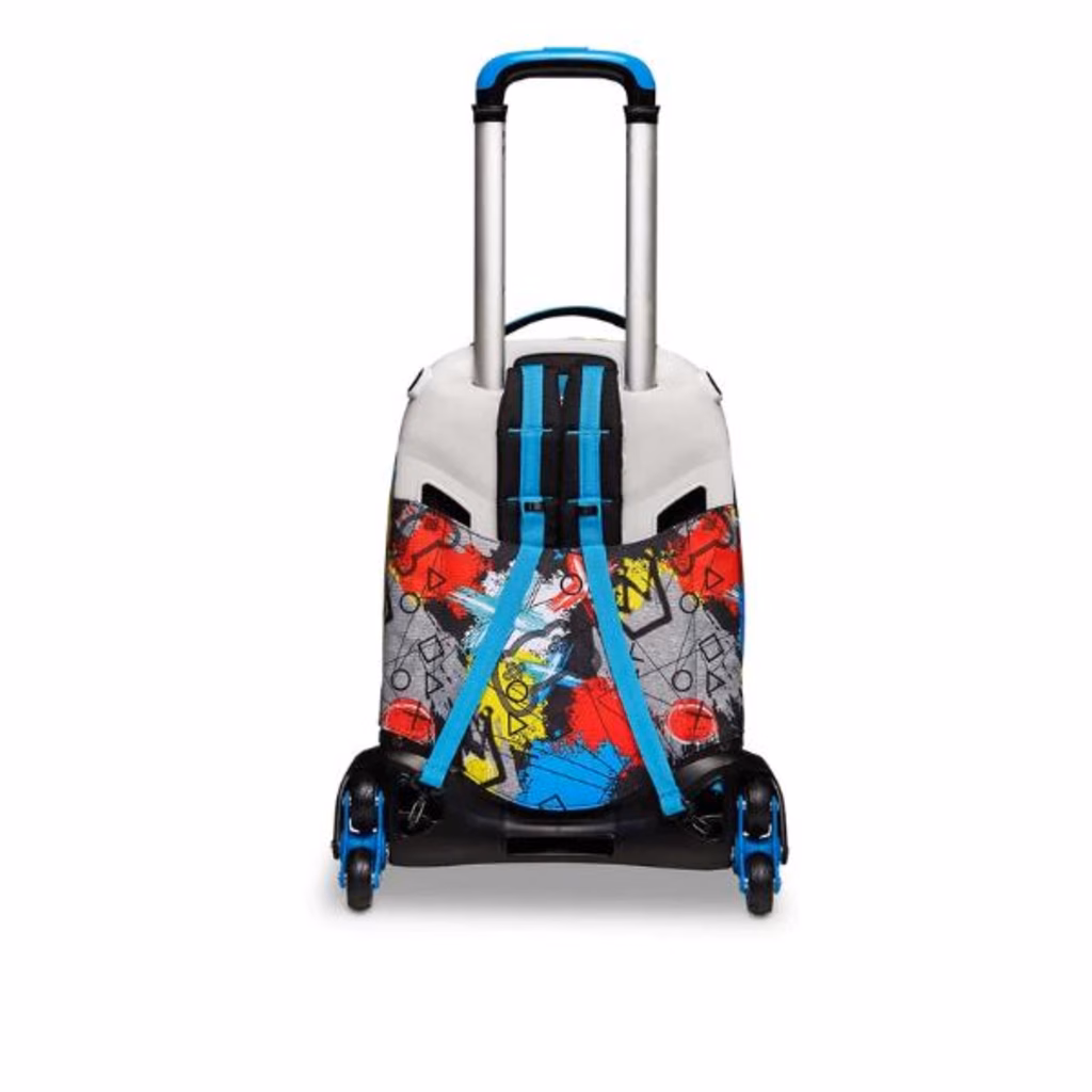 Trolley multiuso e colorato con disegni in stile contemporaneo con graffiti street art. Dotato di tasca frontale e molto spazioso.