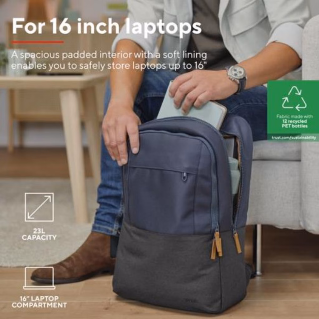 Zaino notebook da 16" rpet blu TRUST LISBOA ZAINO ECO CON CAPACITè€ FINO A 16’’ - 1 25124