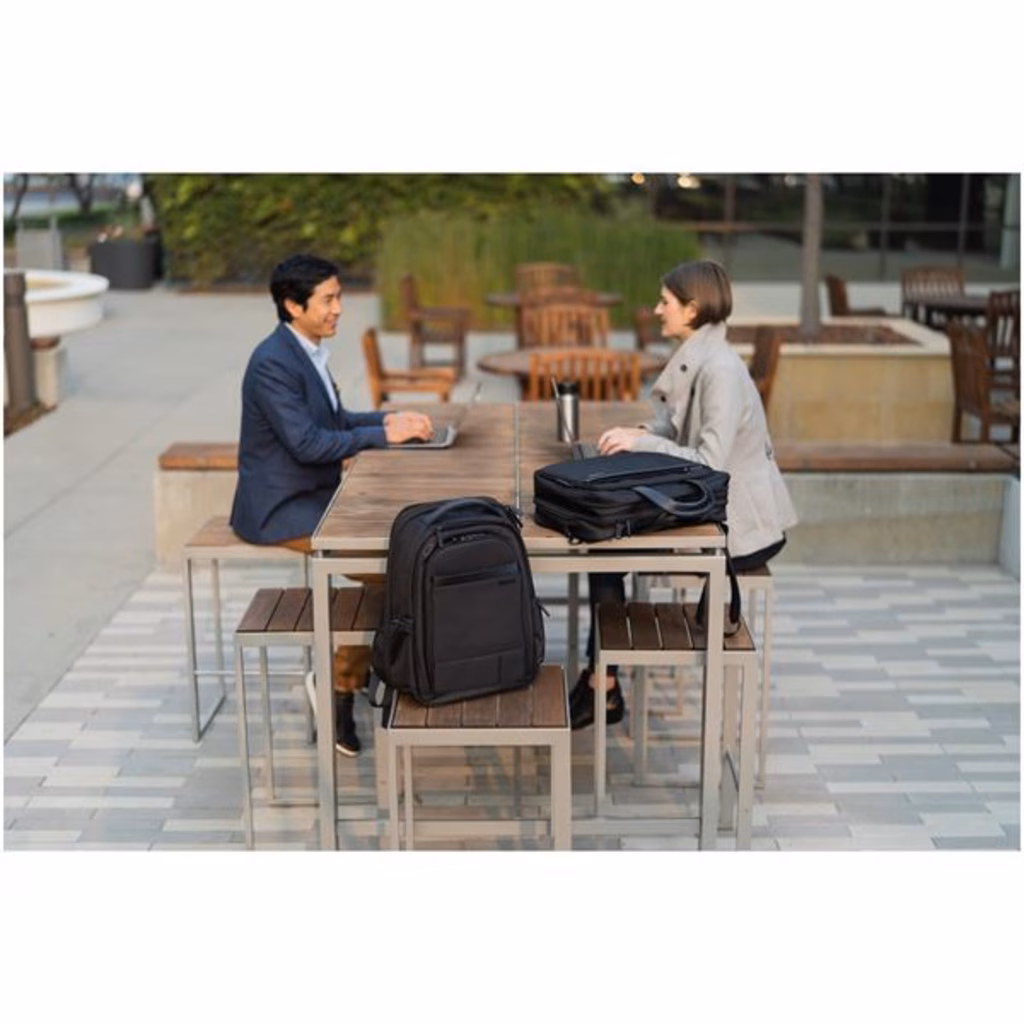 Lo zaino per laptop adatto a checkpoint TSA, ideale per i professionisti in movimento - Lo zaino per laptop Contour 2.0 Business è caratterizzato da un comodo schienale sagomato con dissipazione del calore che avvolge il corpo e sposta il peso verso il centro di gravità - Tasche posizionate strategicamente che consentono di distribuire uniformemente il peso e bilanciare il contenuto - Manico imbottito per il trasporto: un'ulteriore opzione che favorisce la comodità durante il trasporto - Scomparto di sicurezza per laptop con protezione antiforatura e zip con lucchetto per tenere al sicuro il laptop o il tablet da eventuali intrusioni - Tasca di sicurezza con identificazione a radiofrequenza che protegge carte di credito, passaporti (qualsiasi elemento dotato di chip di identificazione a radiofrequenza) da scansioni fraudolente