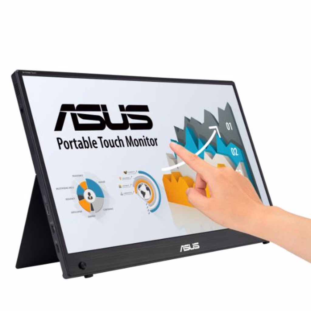 ZenScreen Touch MB16AMTR 16 pollici (15,6 pollici visualizzabili), FHD (1920 x 1080), IPS, touch a 10 punti, batteria integrata, soluzione segnale ibrido, mini-HDMI, supporto ergonomico, attacco per treppiede, tecnologie ASUS Flicker Free e Low Blue Light, compatibile con laptop, smartphone e console di gioco